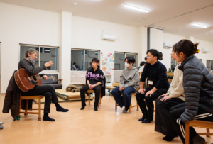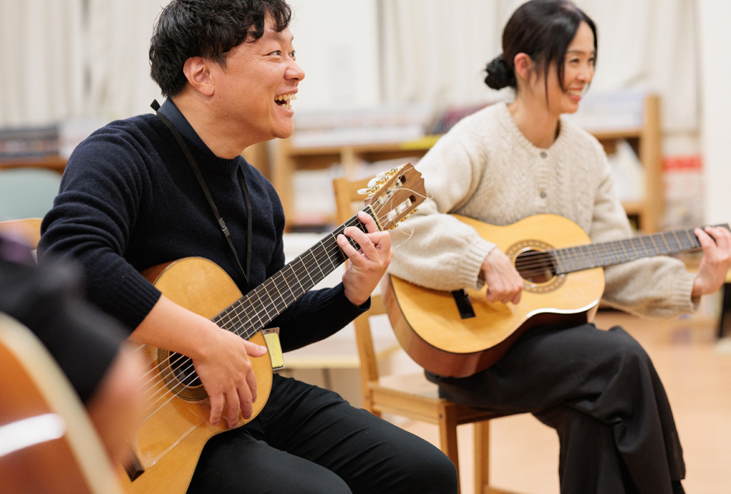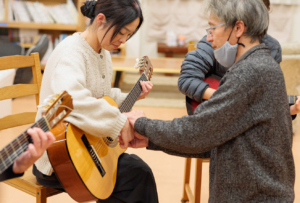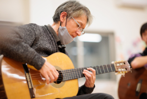 三股町在住プロのギタリスト愛川さんによるゆるく楽しくギターとふれあう時間♪ ギターの貸し出しもしてますよ。