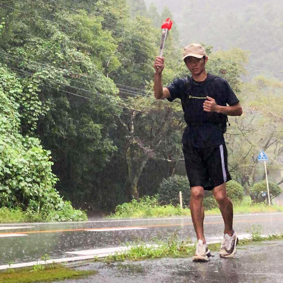 両手をあげているよるっち