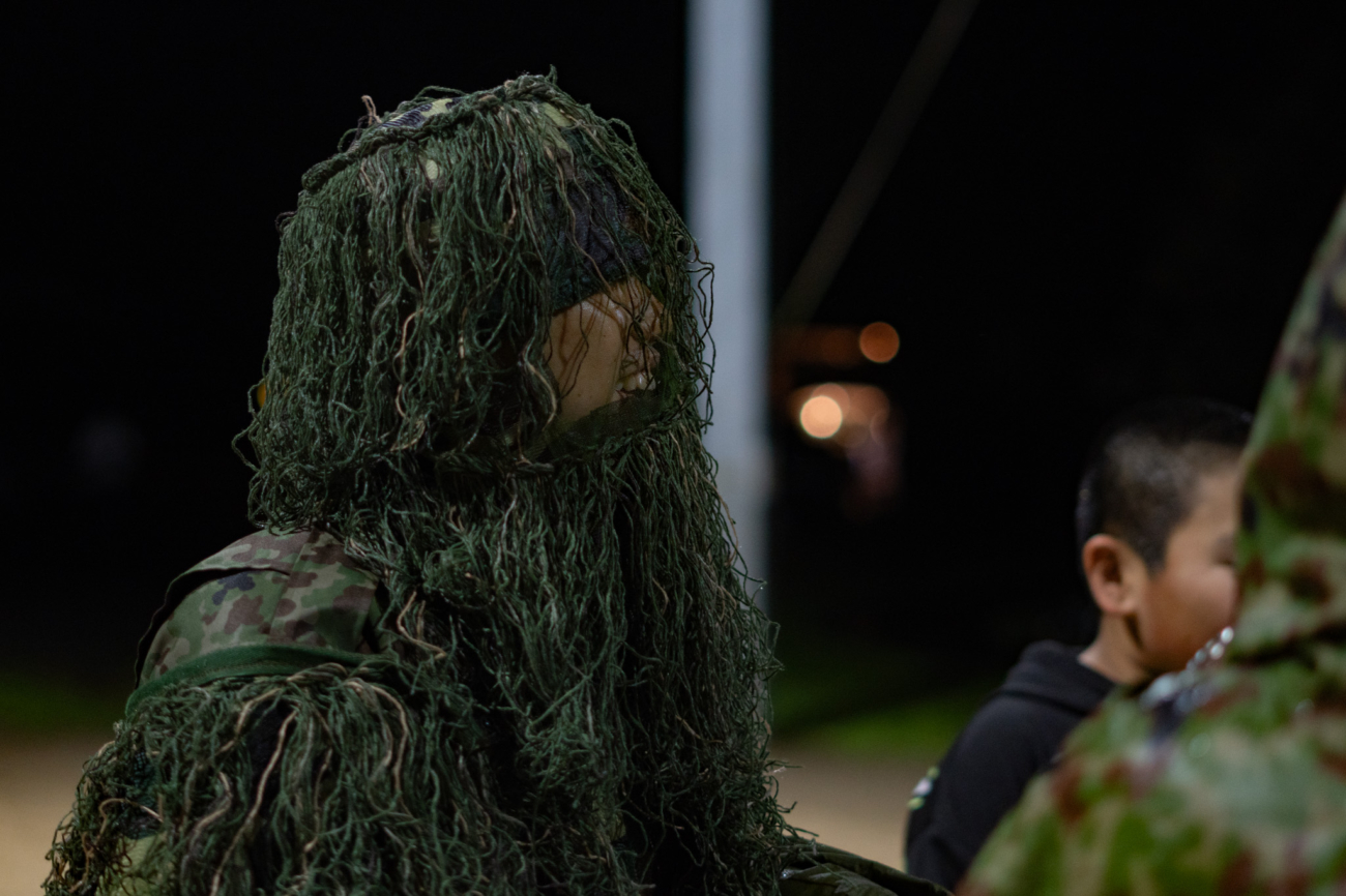 かくれんぼのプロであるカモフラした自衛隊員を探そう。洞察力、好奇心を駆使して挑む新たな社会科見学。